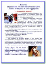 Ответственность за распространение в СМИ, а также в информационно-телекоммуникационной сети заведомо недостоверной общественно значимой информации под видом достоверных сообщений С 18 марта 2019 года внесены изменения в статью 13.15 Кодекса Российской Федерации об административных правонарушениях (Федеральный закон от 18.03.2019 № 27-ФЗ), статья дополнена тремя новыми частями. Так, частью 9 статьи 13.15 установлена административная ответственность за распространение в СМИ, а также в информационно-телекоммуникационной сети заведомо недостоверной общественно значимой информации под видом достоверных сообщений, создавшее угрозу причинения вреда жизни и (или) здоровью граждан, имуществу, угрозу массового нарушения общественного порядка и (или) общественной безопасности либо угрозу создания помех функционированию объектов жизнеобеспечения, транспортной или социальной инфраструктуры, объектов энергетики, промышленности и связи. Санкция статьи предусматривает максимальное наказание в виде штрафа до 500 тысяч рублей с конфискацией предмета административного правонарушения. Повторное совершение указанного административного правонарушения предусматривает наложение административного штрафа до 1 млн рублей с конфискацией предмета административного правонарушения (ч.10.указанной статьи). Согласно части одиннадцатой статьи 13.15 распространение заведомо недостоверной общественно значимой информации под видом достоверных сообщений, повлекшее смерть человека либо причинение вреда здоровью человека предусматривает наложение административного штрафа до 1 млн 500 тысяч рублей с конфискацией предмета административного правонарушения. Примечанием к ст. 20.1 КоАП РФ установлено, что обо всех случаях возбуждения дел об административных правонарушениях, предусмотренных ч.ч. 3-5 ст. 20.1 КоАП РФ в течение 24 часов уведомляются органы прокуратуры Российской Федерации. Составление протокола об административном правонарушении возложено на должностных лиц органов внутренних дел.